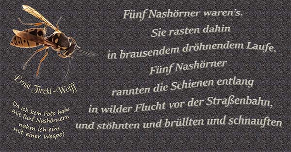 Fünf Nashörner waren’s. Sie rasten dahin