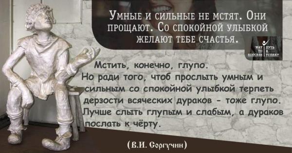 Beim Überfliegen von Facebook stieß Kollege Соргучин auf einen dieser berühmten frommen Sprüche: "Wer klug ist und stark nimmt keine Rache. Er verzeiht. Mit ruhigem Lächeln wünscht er dir Glück."